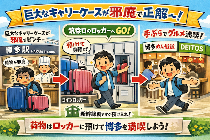 本記事では、便利な筑紫口コインロッカーの活用法と、身軽に行ける「デイトス博多めん街道・ごはん処」の必食グルメをご紹介。